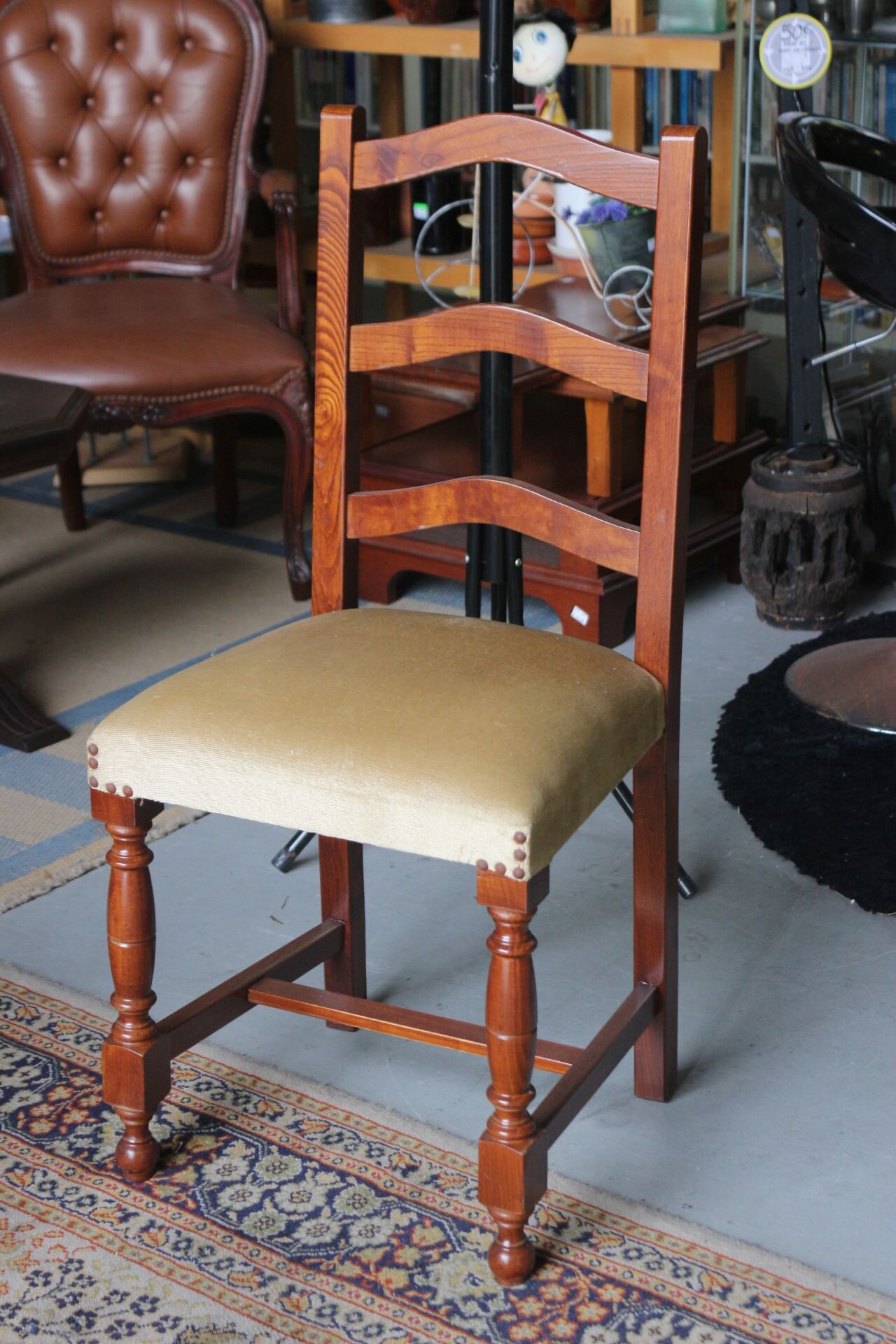 Cadeira em Madeira com Assento em Veludo