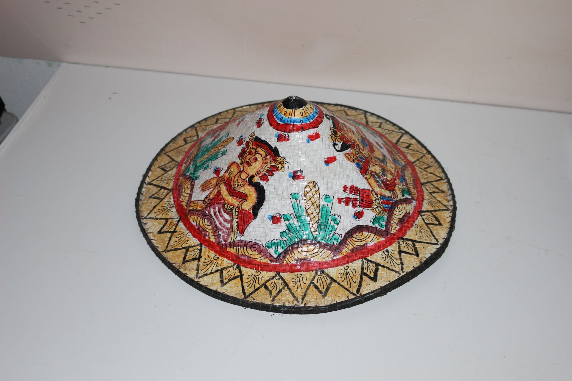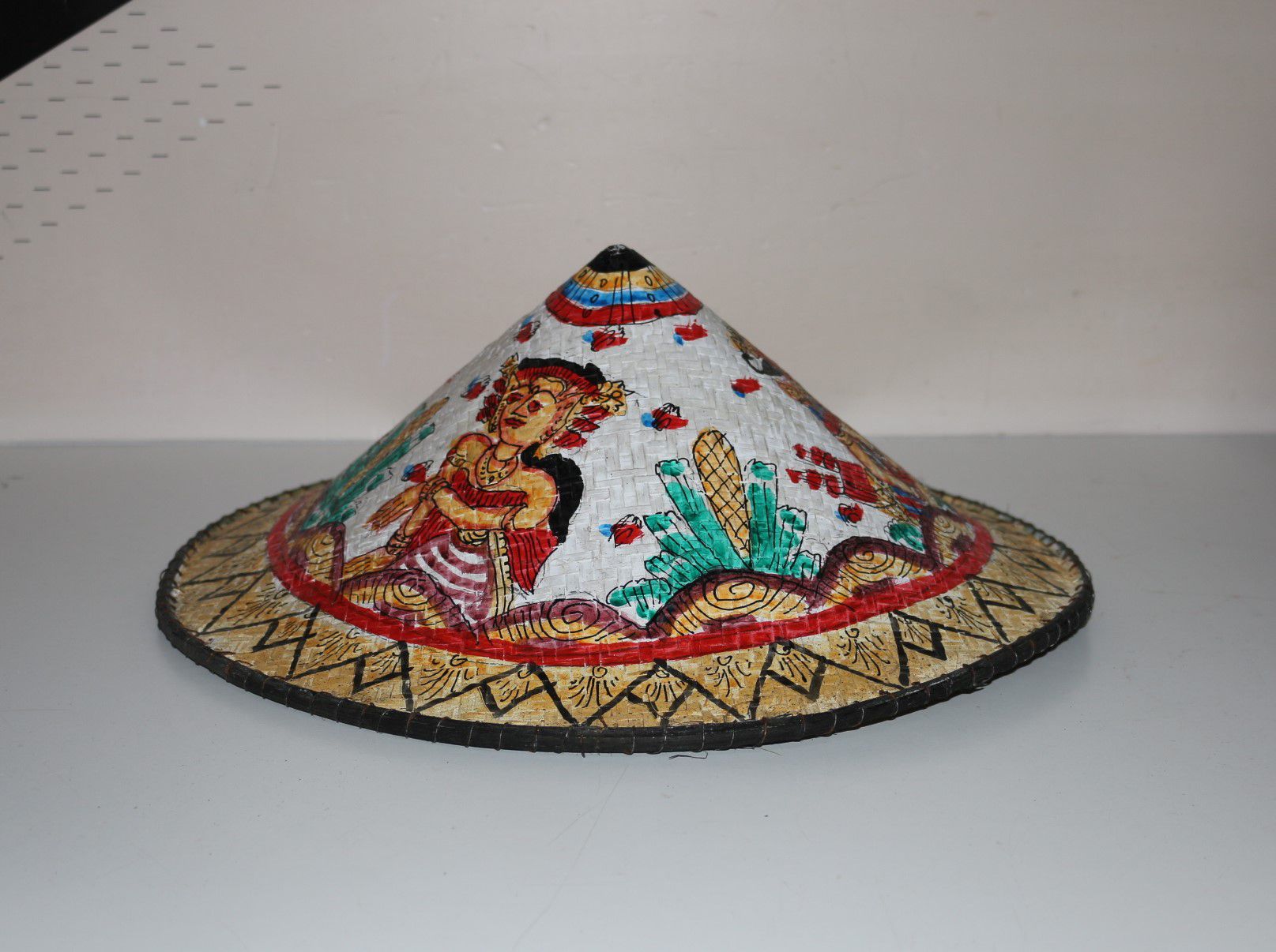 Chapéu Vietnamita em Palha de Bambú Pintado À Mão