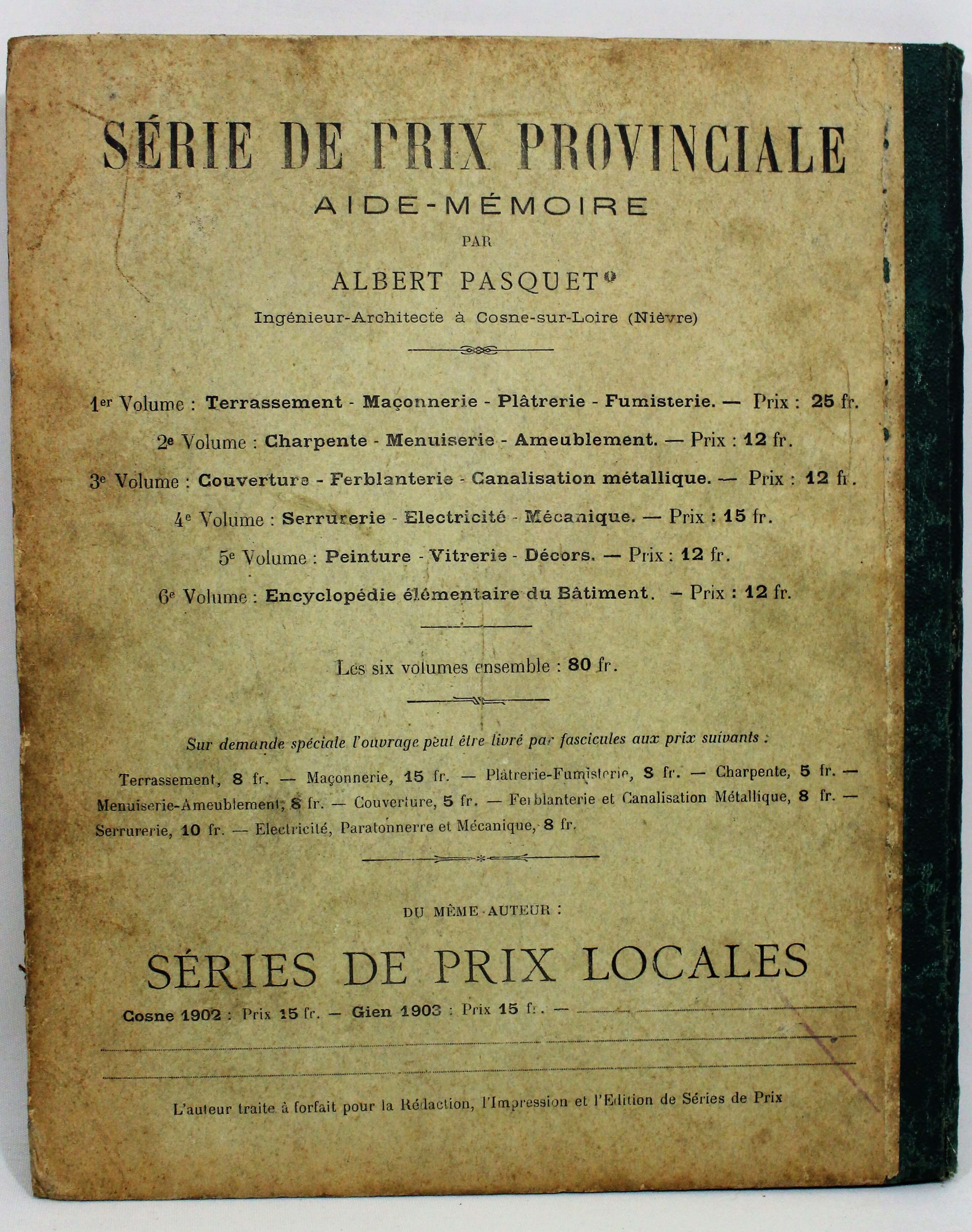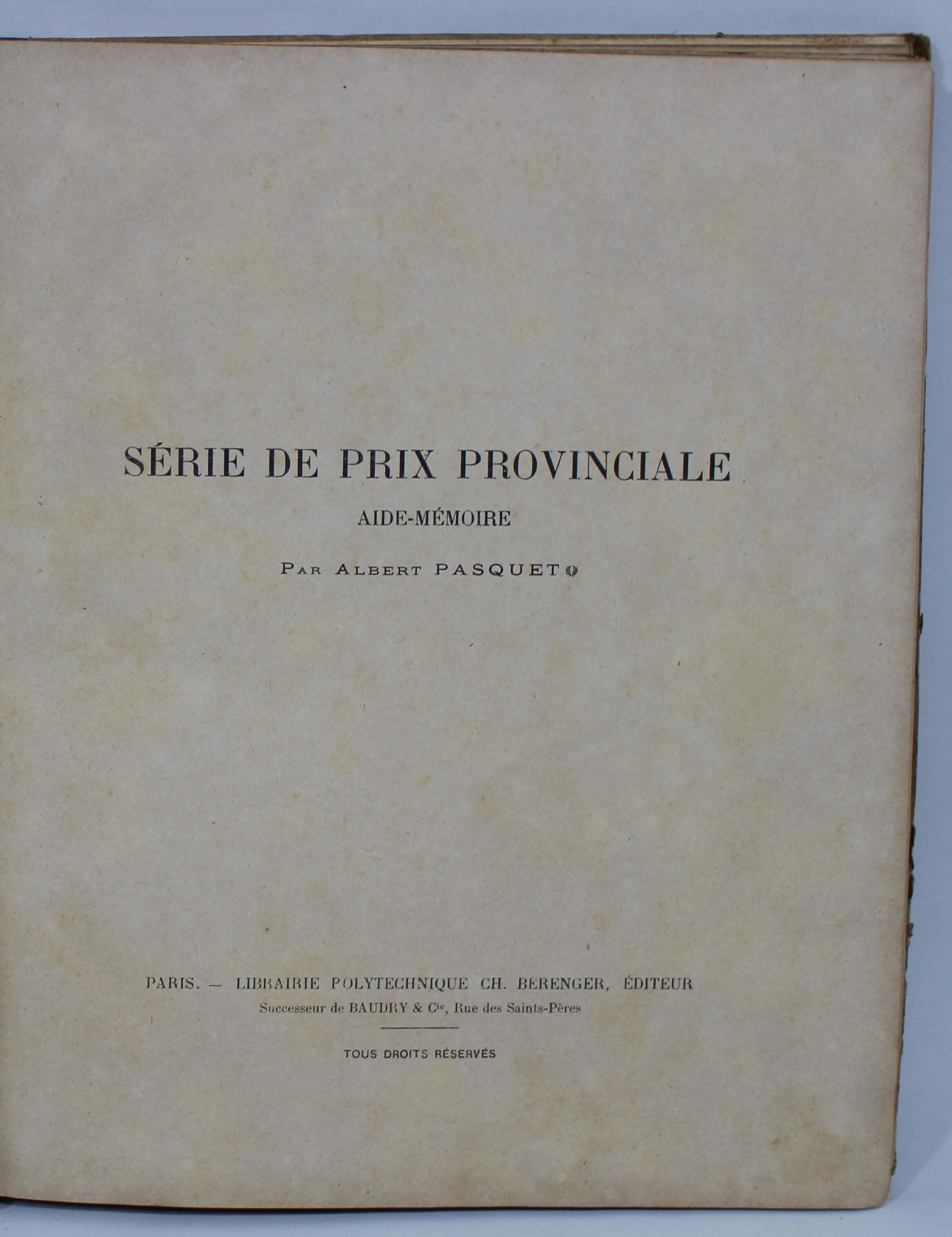 Livro Antigo Serie de Prix Provinciale Aide Memoire