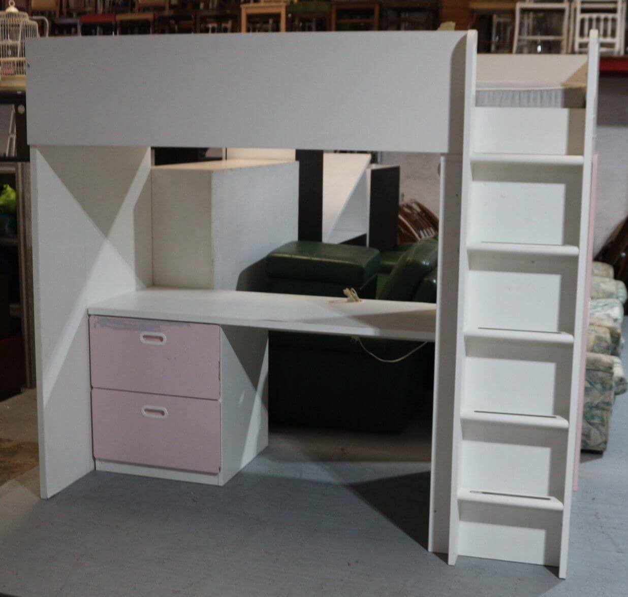 Cama com colchão, secretária com iluminação e roupeiro